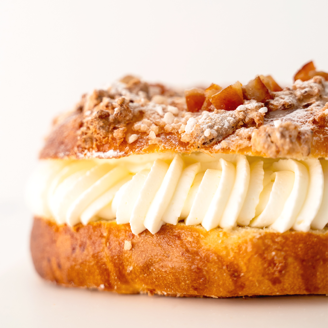 Nuestro emblemático roscón, reconocido como el Mejor Roscón de Madrid, es una masa ligera que elaboramos en el día, con mantequilla francesa de alta calidad, rayaduras frescas de naranja, limón y mandarina, agua de azahar de Sevilla, con fermentaciones de más de 24 h. Coronado con almendra largueta, azúcar granillo y daditos de naranja confitados.